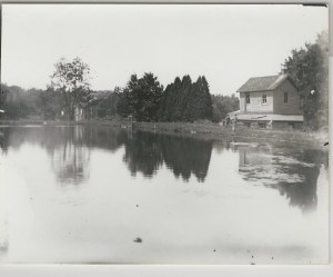 In 1864, Prime had a dam built north of his new house to create a pond in the swampy area that stretched from his property up to the harbor.[13] The pond was stocked with trout. Perhaps inspired by the State fish hatchery in Cold Spring Harbor, which opened in 1883, Prime also had a hatchery.[14] The pond became a primary source for ice locally. The ice was 5 to 8 inches thick and clear as crystal.[15] It also provided a place for skating. Prime continued to enlarge and improve the pond over the years until it became “a perfect gem of beauty.”[16]