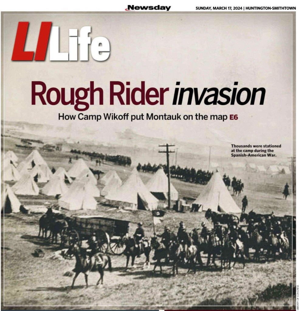 The cover story of Newsday’s March 17, 2024 edition of LI Life highlights the history of Montauk’s Camp Wikoff.  The interesting account of the camp where Theodore Roosevelt, his Rough Riders, and other soldiers were quarantined after the Spanish American War did not include the very small role Huntington played in this story.